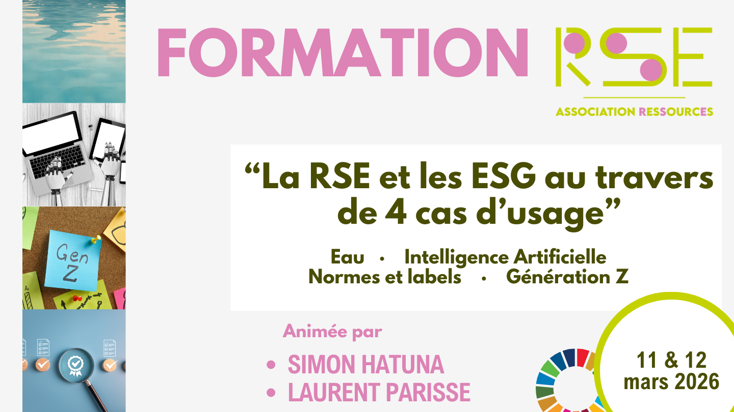 Nouvelle formation RSE & ESG – 11 et 12 mars 2026 (Metz)ResSourcEs organise une formation inter-entreprises de 2 jours pour aborder la RSE par les usages, au plus près des enjeux concrets des organisations.Chaque demi-journée est consacrée à l’application de la RSE et ESG pour chacun des cas d’usage.Au programme :💧 L’eau – ressource stratégique🤖 […]